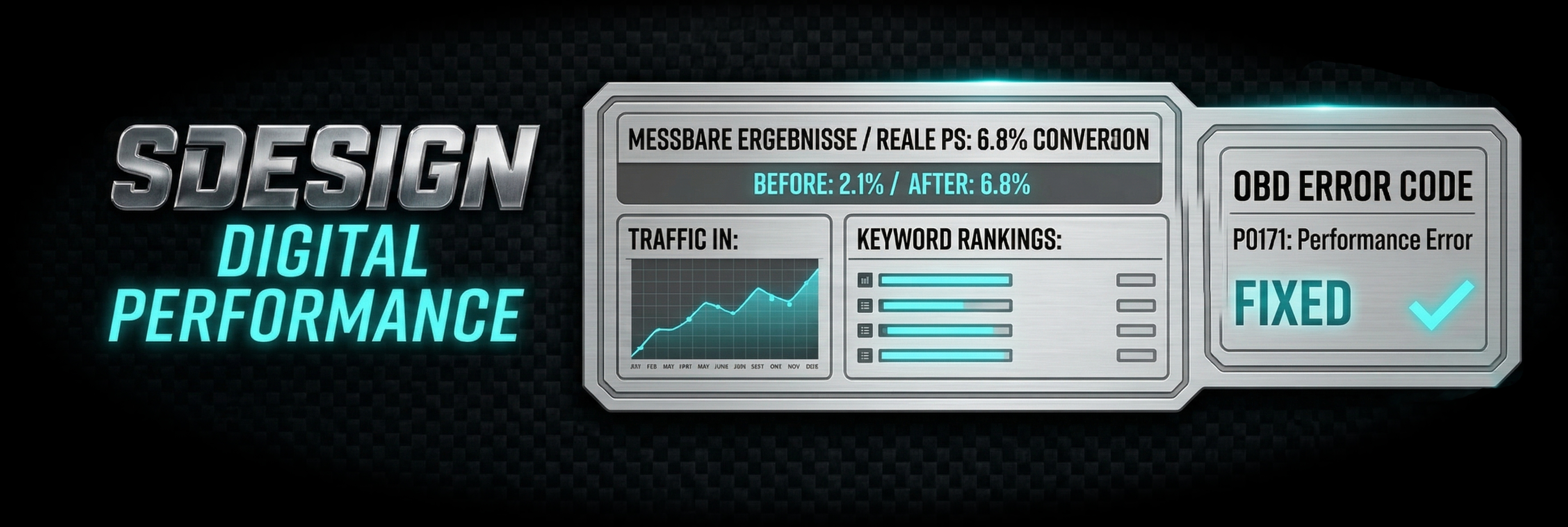 Schluss mit Serien-Websites von der Stange. In unserer Performance-Schmiede optimieren wir dein Web-Chassis für maximale Sichtbarkeit und High-Speed-Rankings.